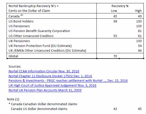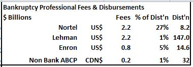 The Nortel bankruptcy is the most expensive court administered large bankruptcy in the history of the world. See tables below.